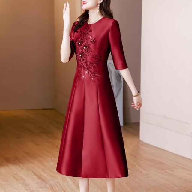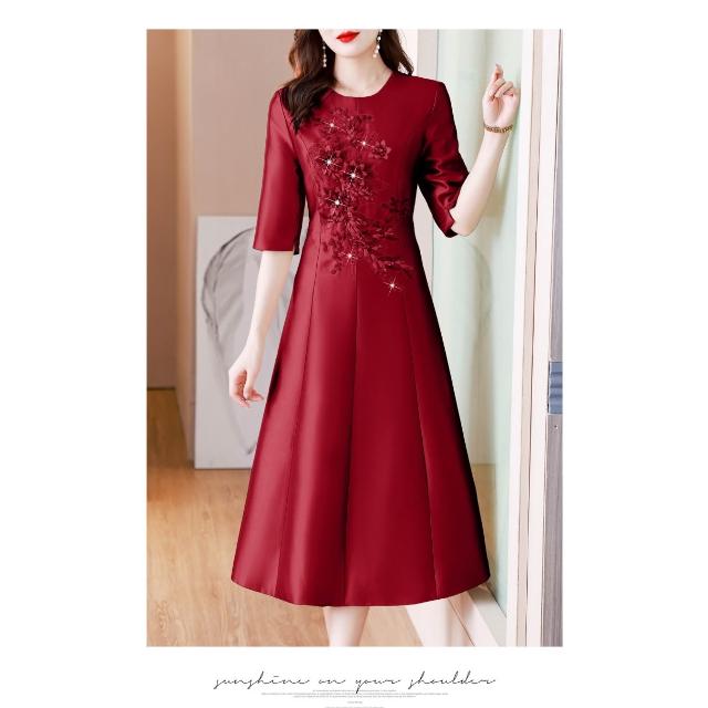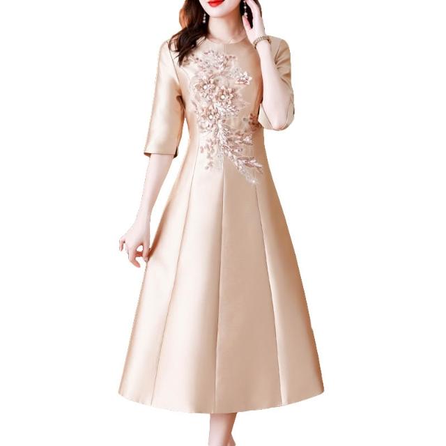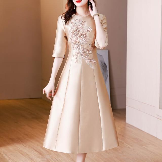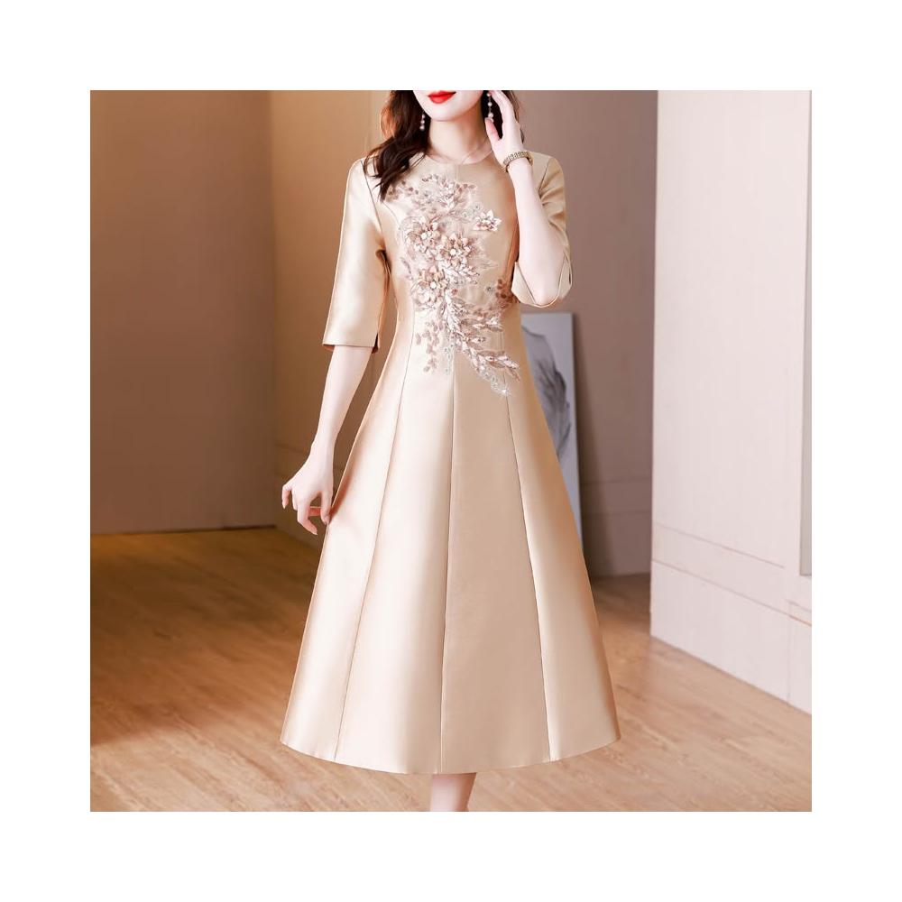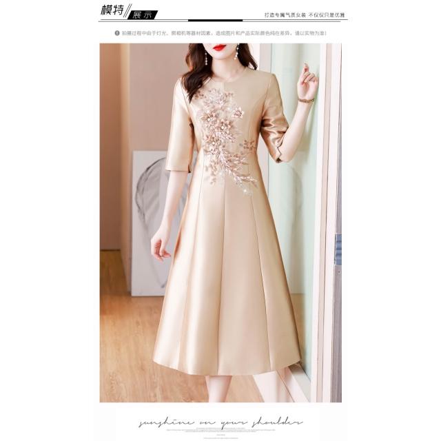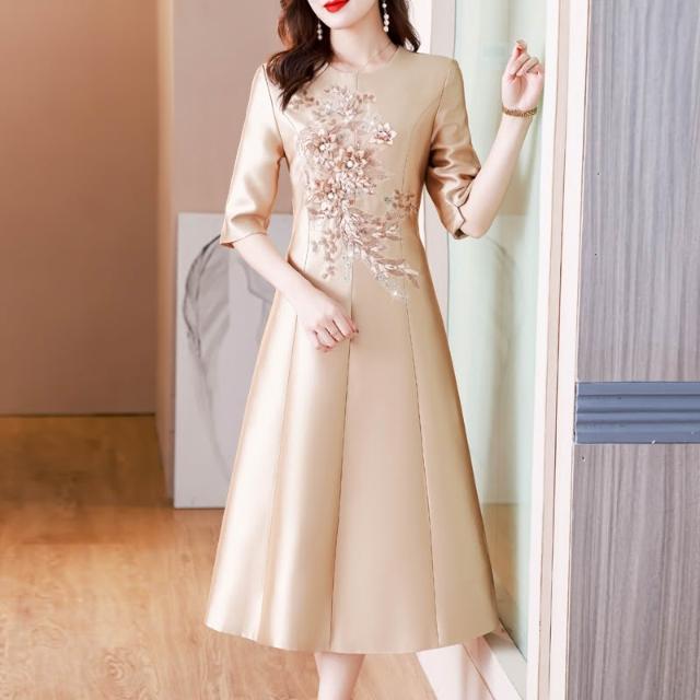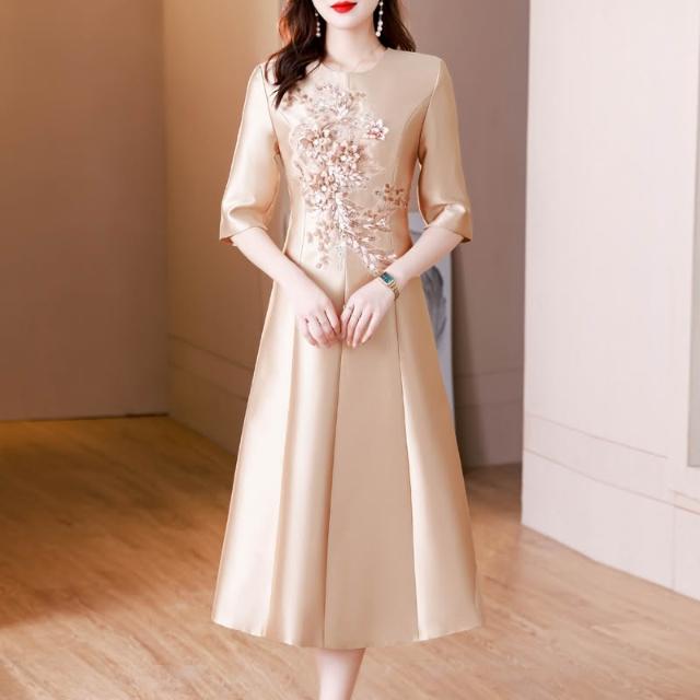 媽媽婚宴高貴敬酒晚禮服年輕喜婆婆參加婚禮服日常可穿連衣裙 M-C 全店免運免稅