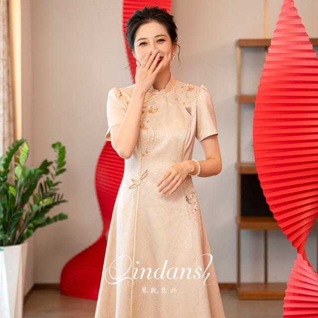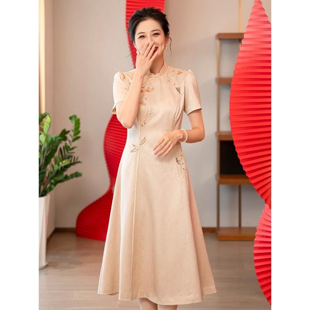 媽媽婚宴禮服新款年輕高貴喜婆婆旗袍夏連衣裙 M-C 全店免運免稅