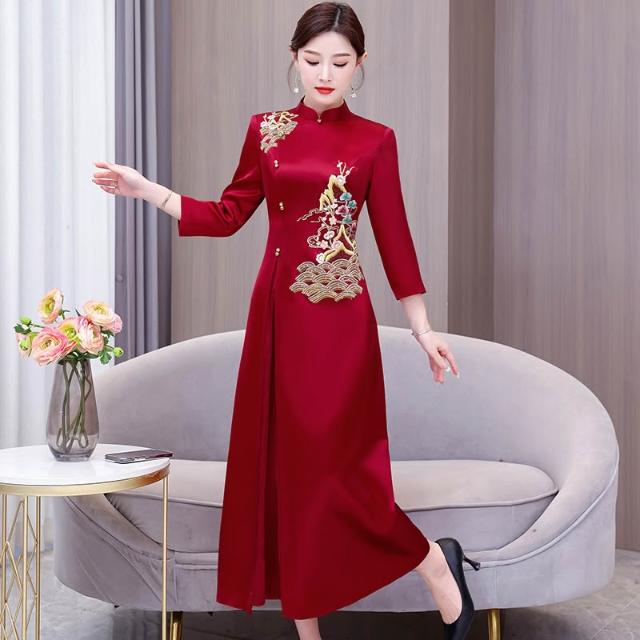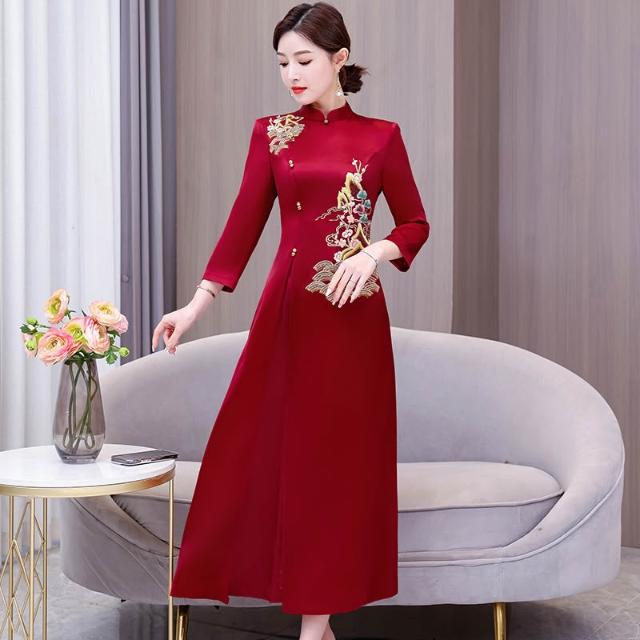 喜婆婆婚宴裝晚禮服秋季刺繡大碼遮肚媽媽旗袍裙高貴洋氣長款年輕 M-C 全店免運免稅