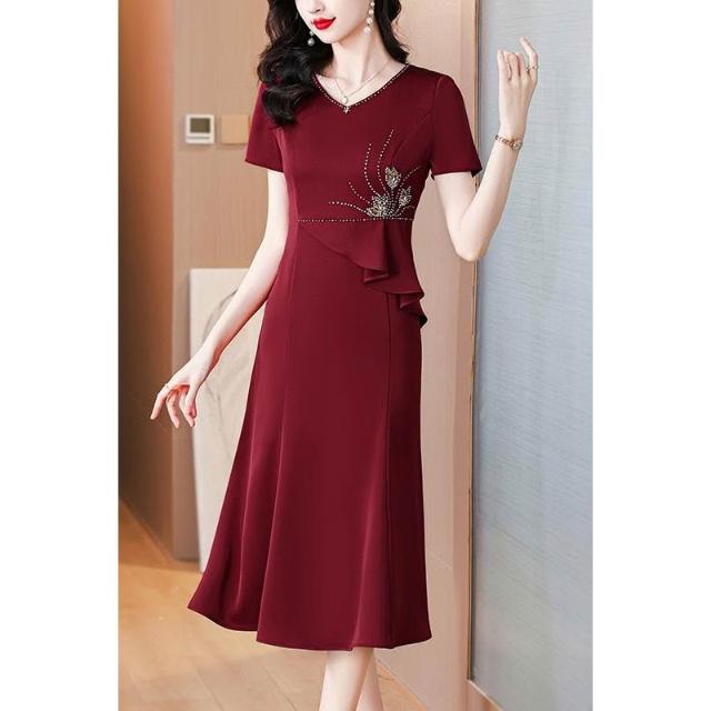 參加結婚禮媽媽禮服春夏裝嶽母喜婆婆婚宴裝丈母娘高端高貴連衣裙 M-C 全店免運免稅