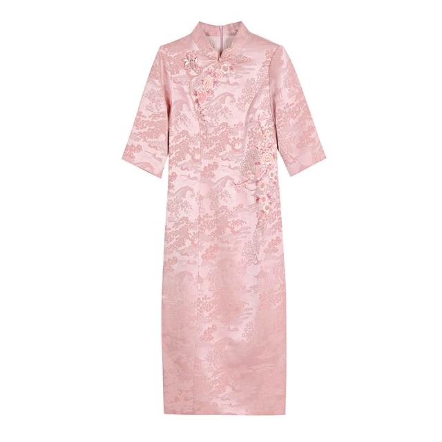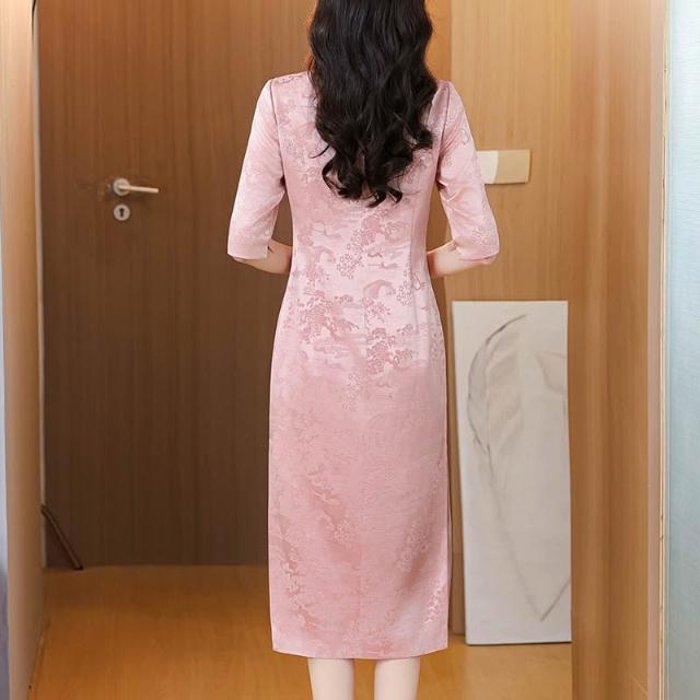 高貴喜婆婆婚宴裝新款中式改良旗袍高端醋酸面料結婚媽媽禮服 M-C 全店免運免稅