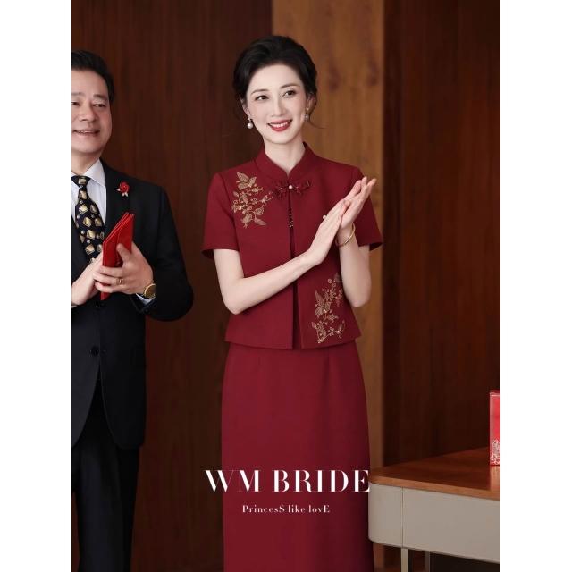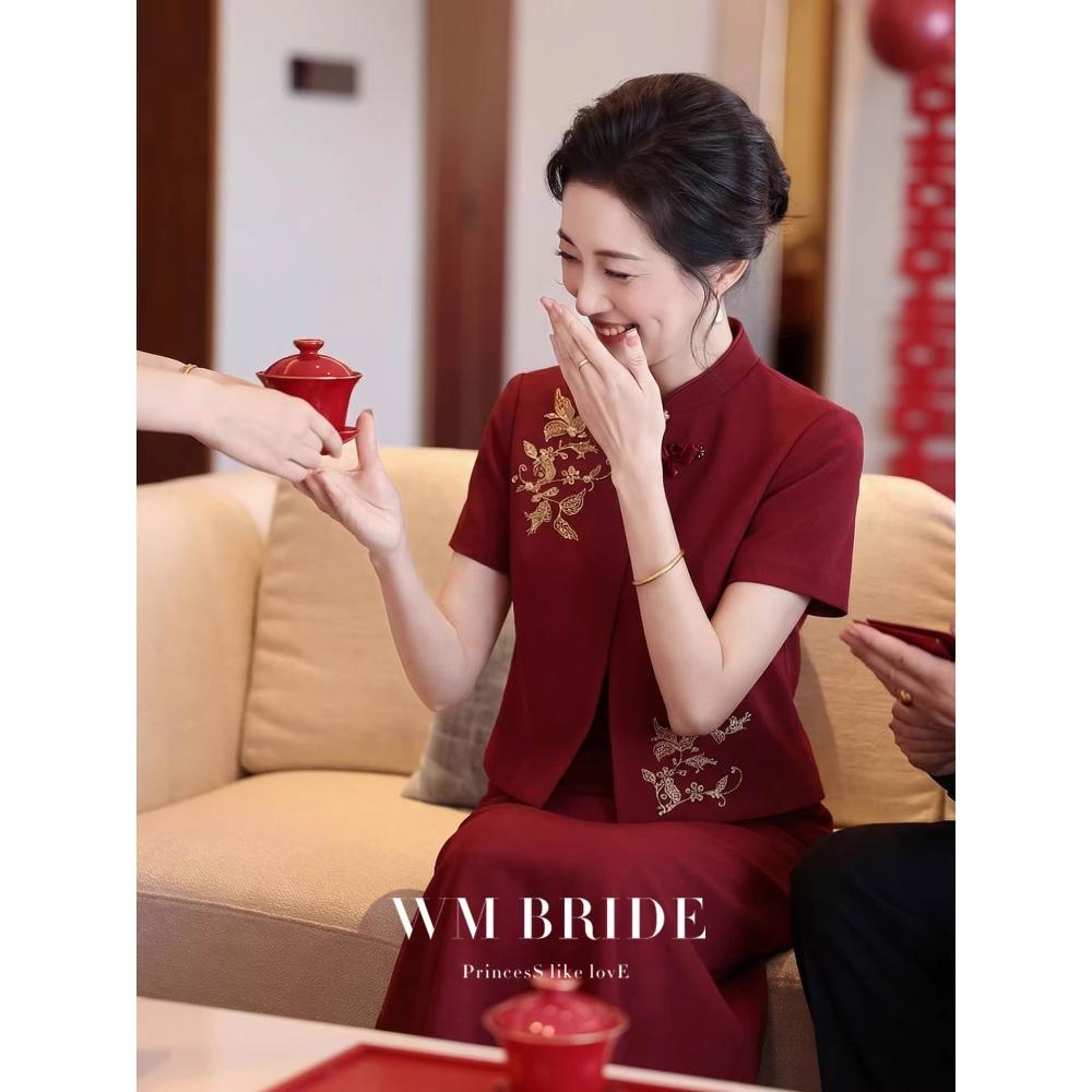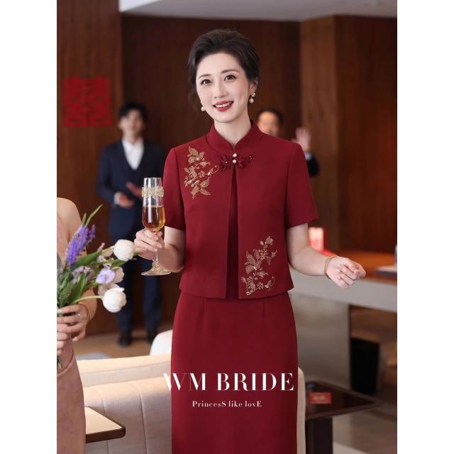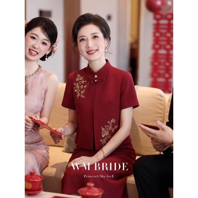 酒紅色喜婆婆婚宴禮服高貴年輕2026氣質媽媽裝旗袍平時可穿兩件套 M-C 全店免運免稅