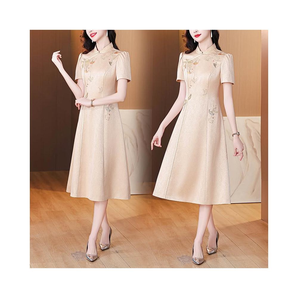 新款年輕高貴喜婆婆旗袍夏連衣裙媽媽婚宴禮服 M-C 全店免運免稅