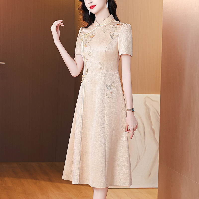 新款年輕高貴喜婆婆旗袍夏連衣裙媽媽婚宴禮服 M-C 全店免運免稅