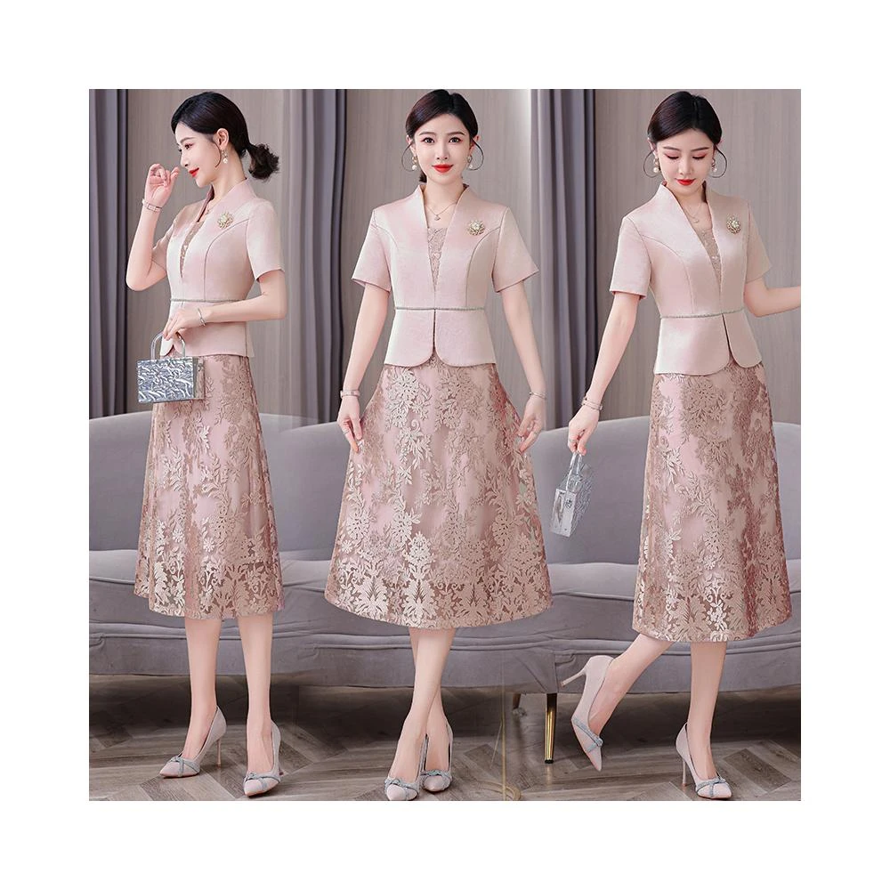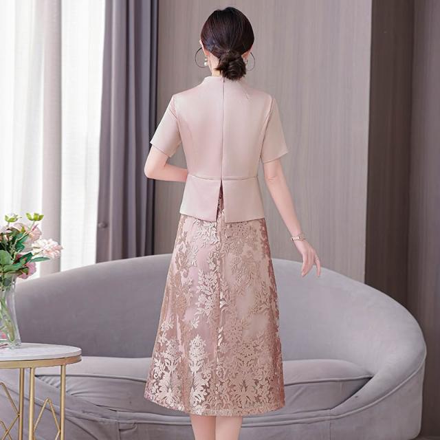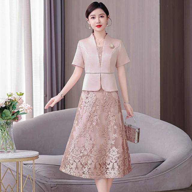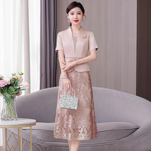 高端媽媽婚宴禮服年輕2026新春夏季高貴旗袍訂婚禮服平時可穿粉色 M-C 全店免運免稅