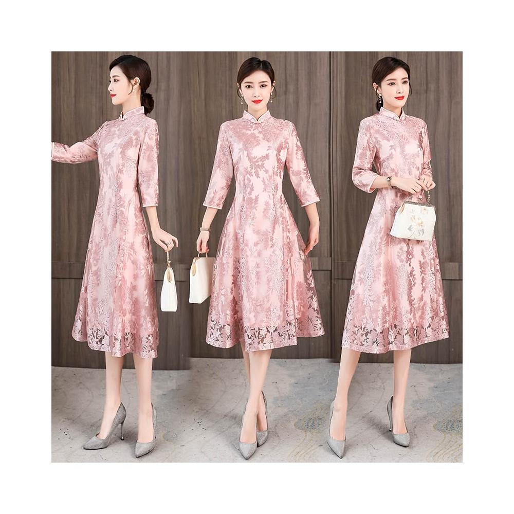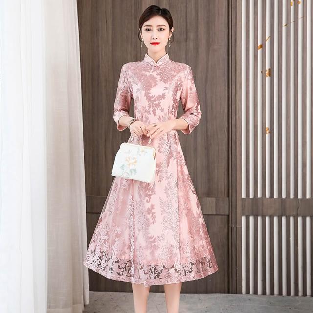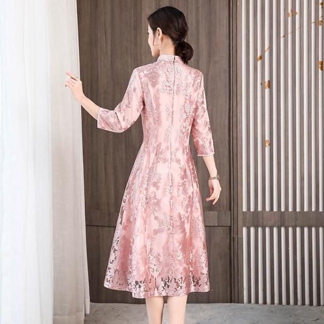 改良版旗袍連衣裙2026春秋新款年輕媽媽禮服女中長款中國風旗袍裙 M-C 全店免運免稅