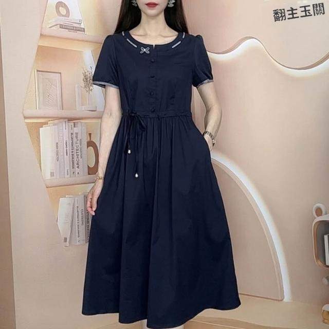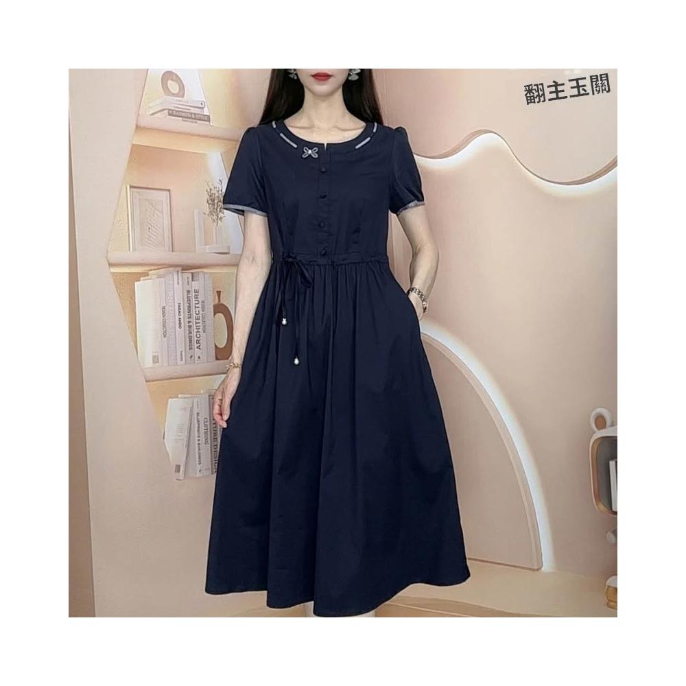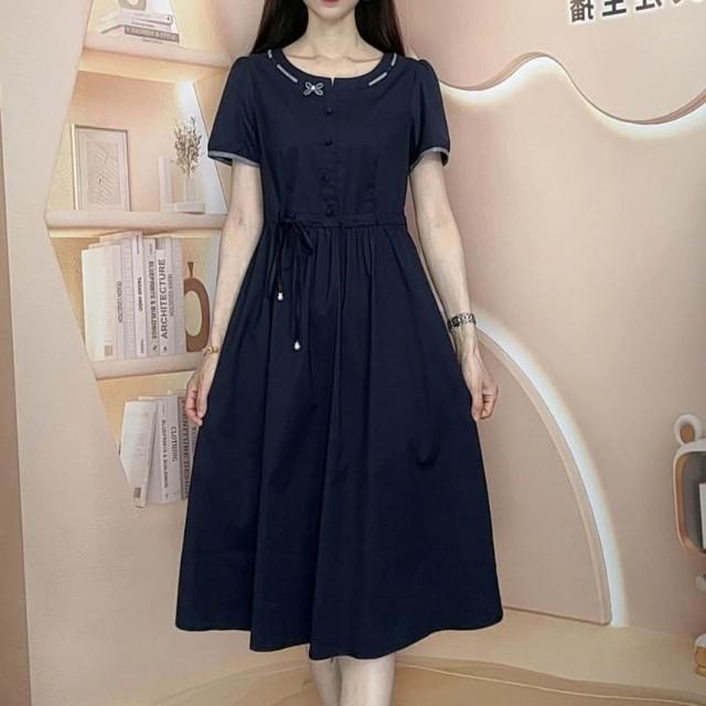 2026年夏季新款時尚洋氣減齡遮肚子顯瘦短袖中長款連衣裙 M-C 全店免運免稅