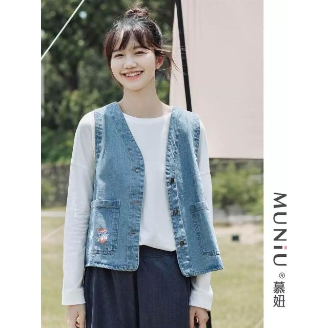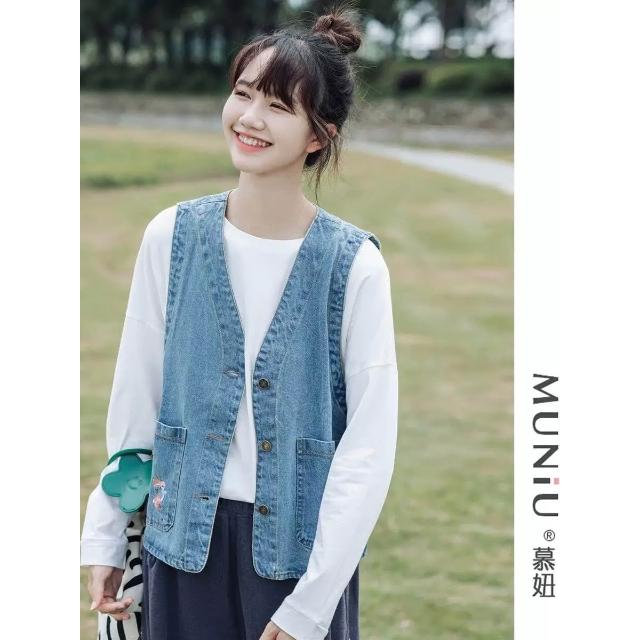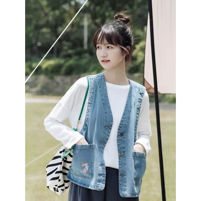 日系牛仔馬甲外套女2026年春季新款復古甜酷無袖坎肩馬夾背心外穿 M-C 全店免運免稅