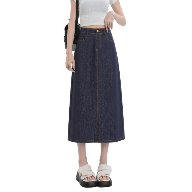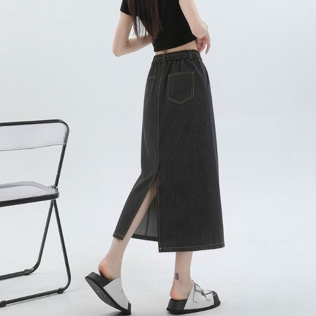 實拍 梨形身材藍色天絲牛仔半身裙女夏季薄款大碼高腰中長款a字裙 M-C 全店免運免稅