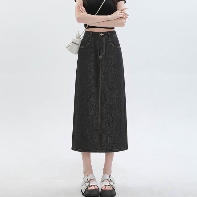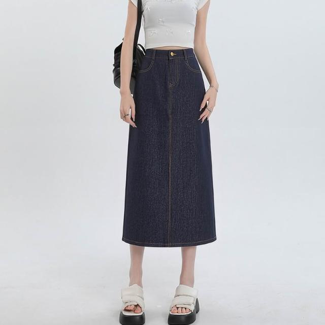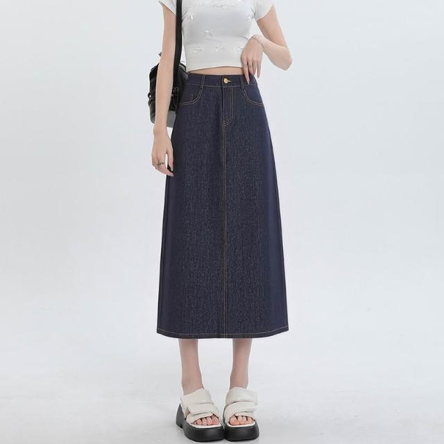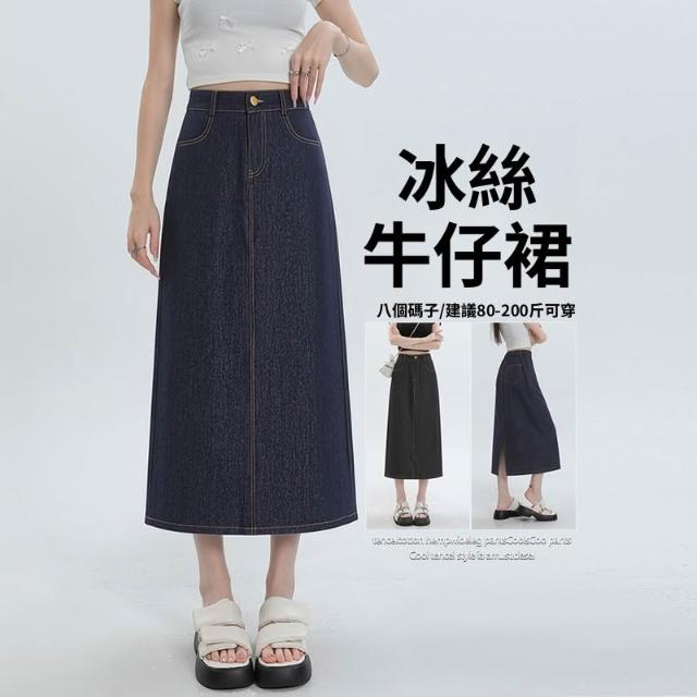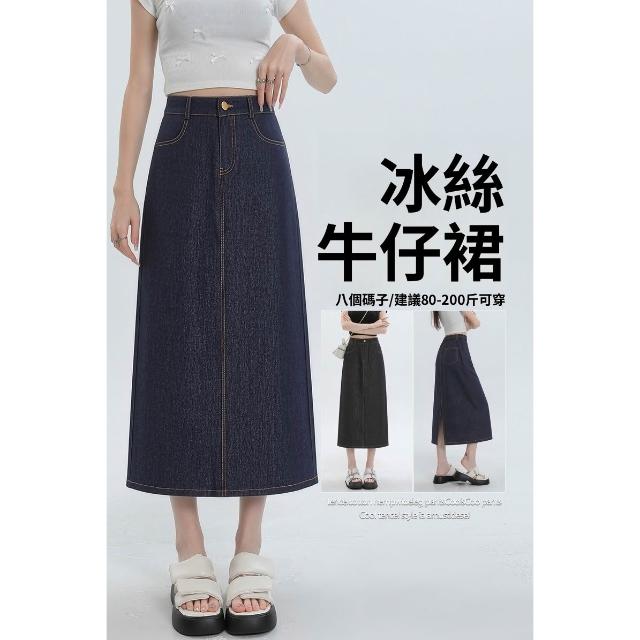 實拍 梨形身材藍色天絲牛仔半身裙女夏季薄款大碼高腰中長款a字裙 M-C 全店免運免稅