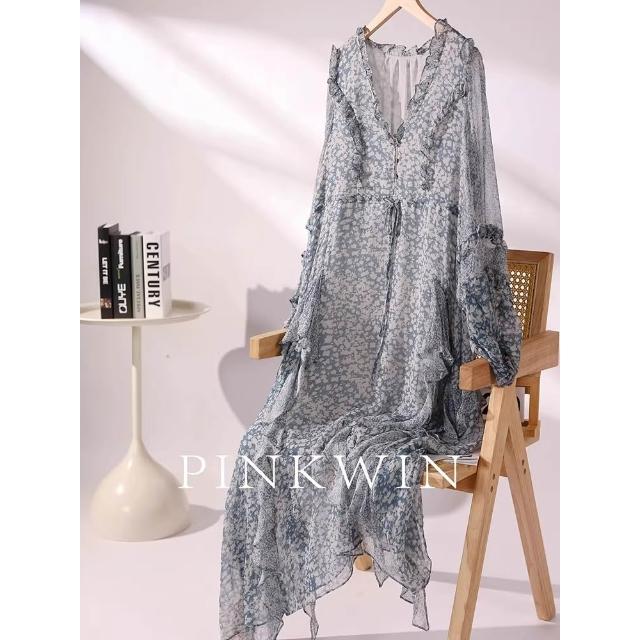 真絲連衣裙女2026春夏新款小眾設計感收腰桑蠶絲碎花仙女長裙 M-C 全店免運免稅
