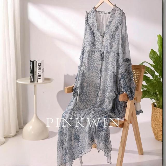 真絲連衣裙女2026春夏新款小眾設計感收腰桑蠶絲碎花仙女長裙 M-C 全店免運免稅