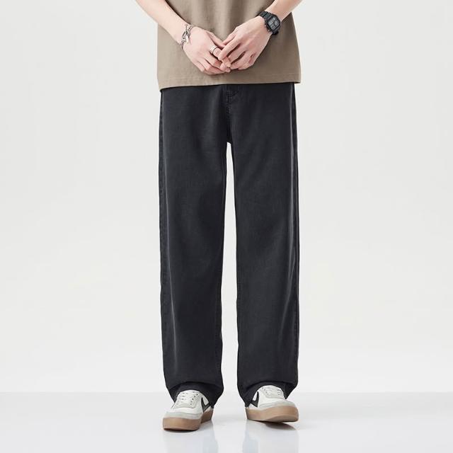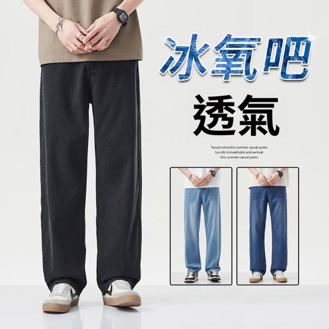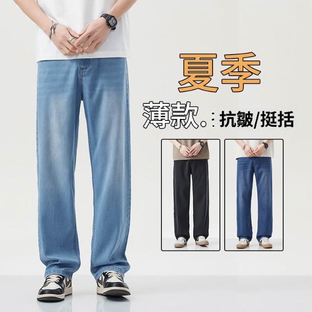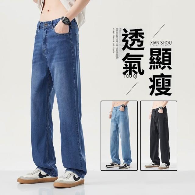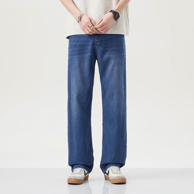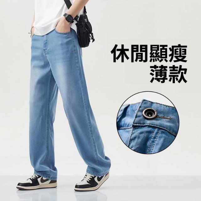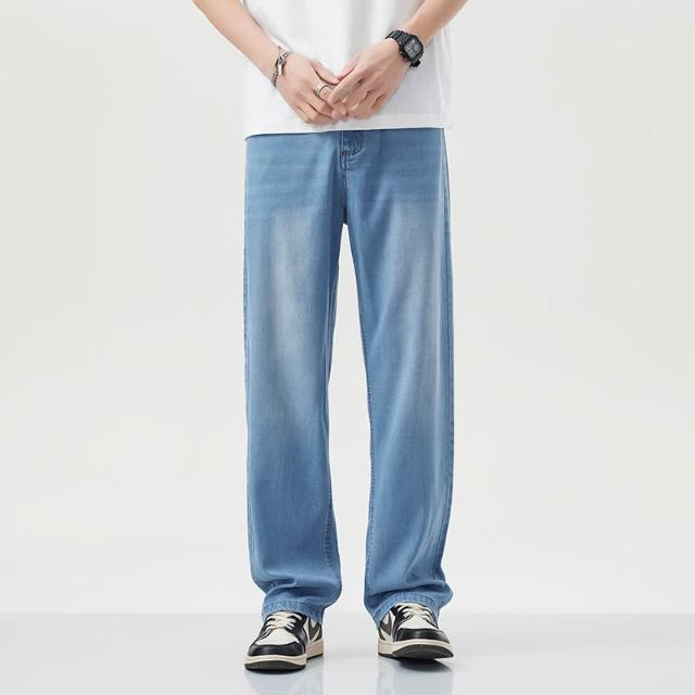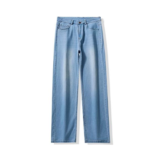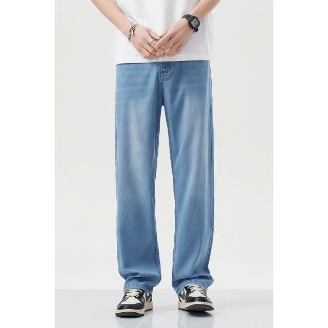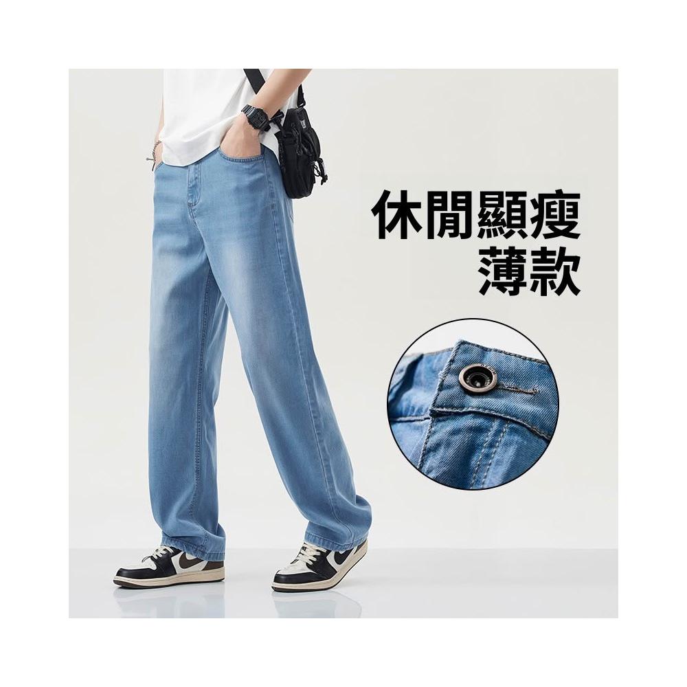 夏季牛仔褲男萊賽爾天絲薄款寬松直筒褲百搭淺藍色休閑透氣闊腿褲 【威登尼男装】