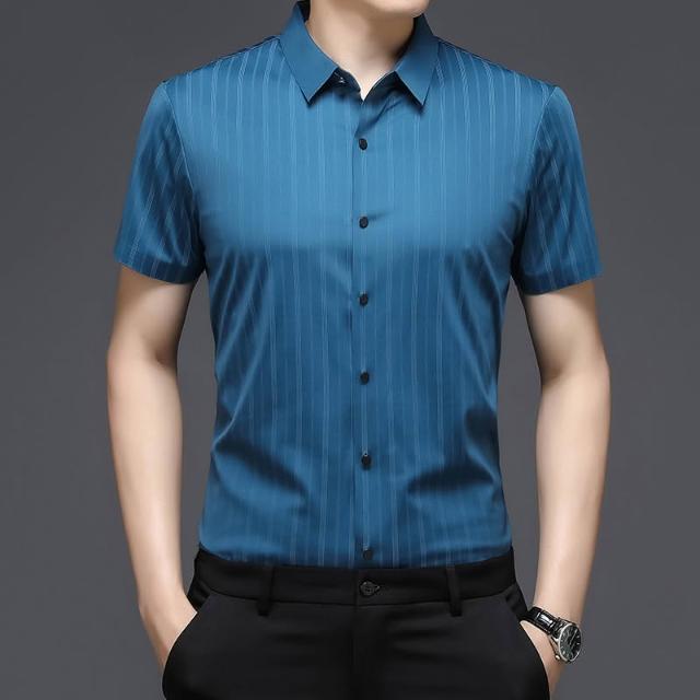 條紋襯衫男夏季桑蠶絲短袖襯衣男士高端抗皺免燙休閑男爸爸裝襯衫 【威登尼男装】