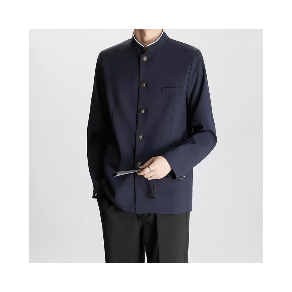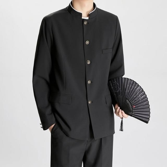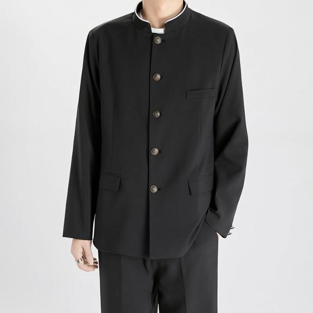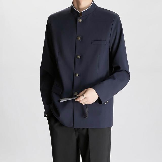 新中式中山裝紐扣西服夾克男裝痞帥春秋休閑中國風立領西裝外套潮 【威登尼男装】