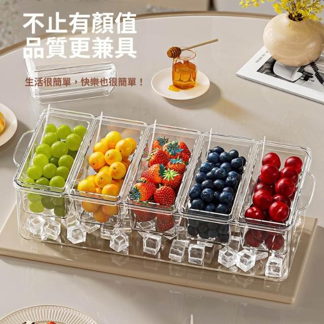 优厨纳 家用水果收納盒食品級戶外野餐分格冰鎮盒子沙拉盒家用塑料保鮮盒
