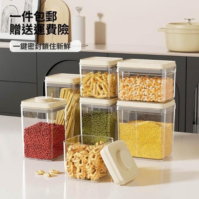 优厨纳 方形密封罐廚房按壓防潮保鮮塑料罐食品級冰箱透明五谷雜糧收納盒