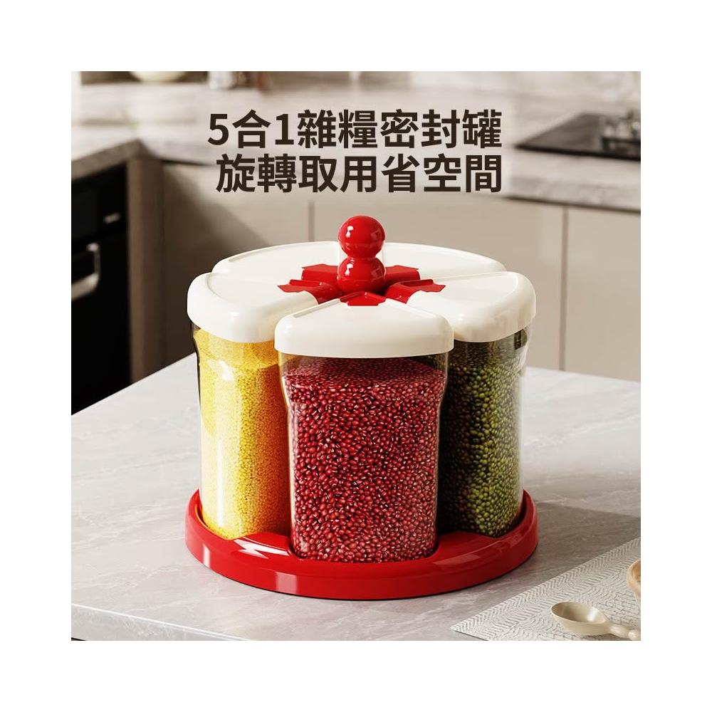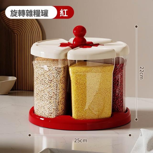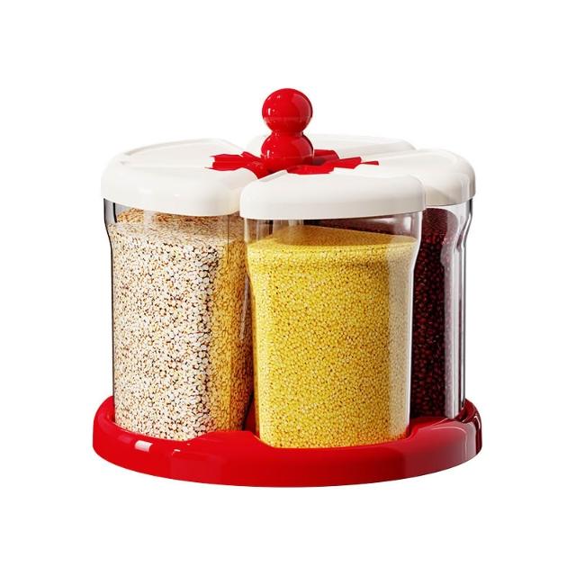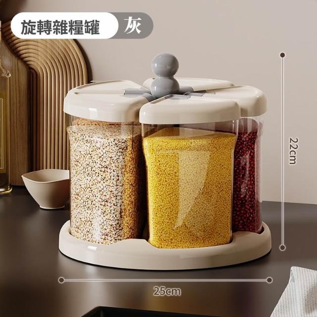 优厨纳 廚房可旋轉五谷雜糧收納罐防潮防蟲密封罐分格米桶帶蓋分類儲米箱