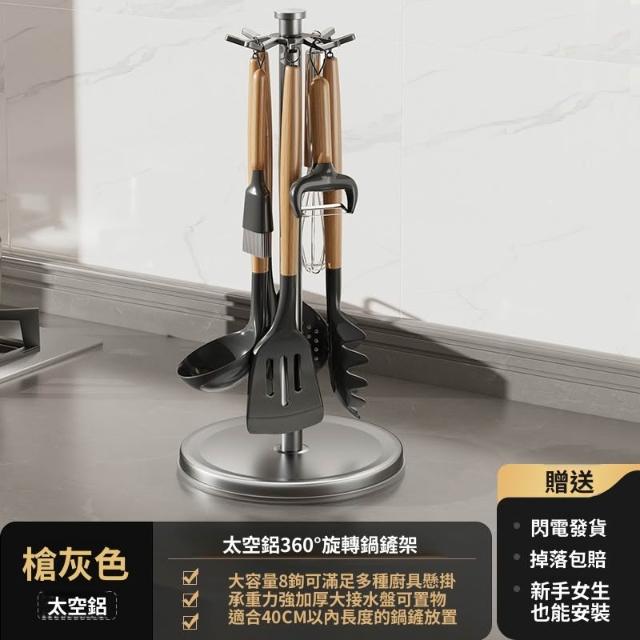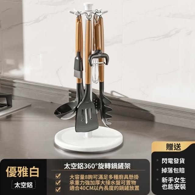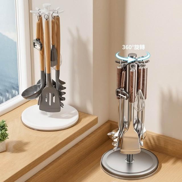 廚房旋轉鍋鏟置物架勺子鏟子掛架臺面收納掛式廚具瀝水支架 优厨纳家居