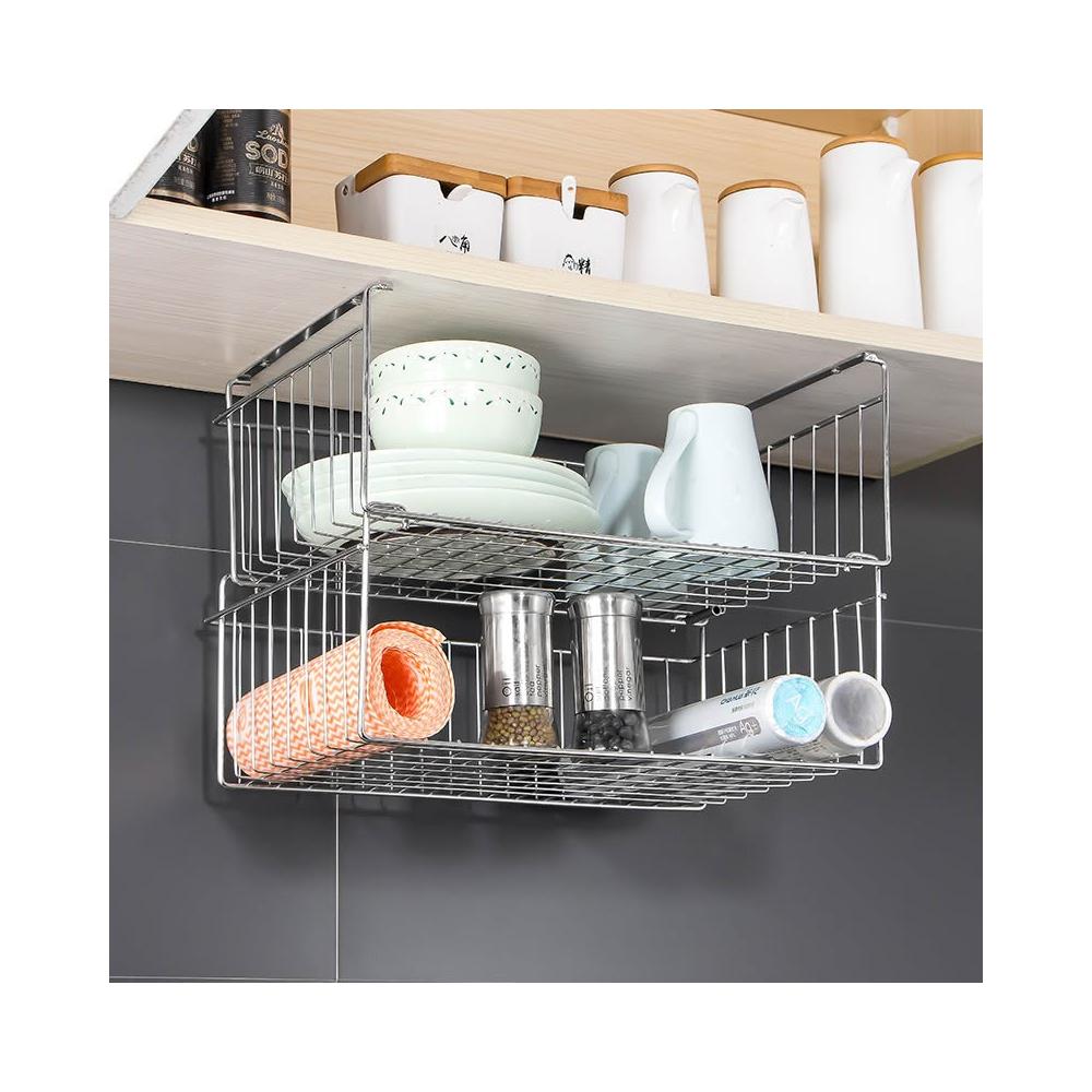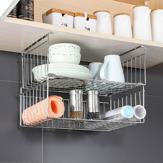 櫥櫃掛籃置物架304不銹鋼廚房吊櫃掛架下掛籃廚具懸掛收納儲物架 优厨纳家居