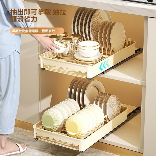 廚房碗碟置物架廚櫃內置抽拉式碗盤收納架抽拉碗架瀝水收納碗架 优厨纳家居