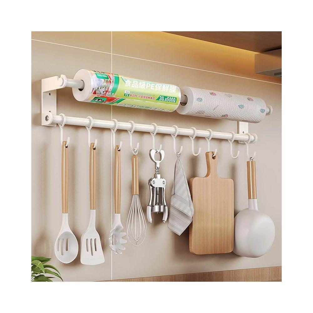 廚房掛鉤掛桿免打孔壁掛式置物架廚具勺子鍋鏟保鮮膜抹布收納架子 优厨纳家居