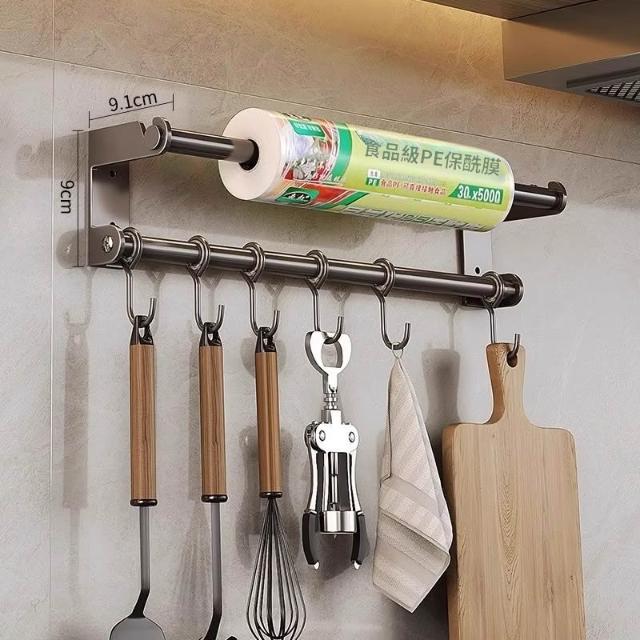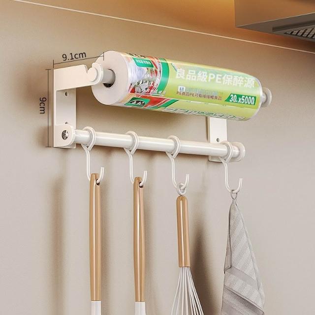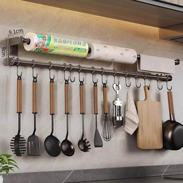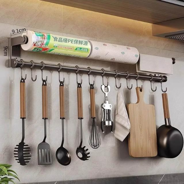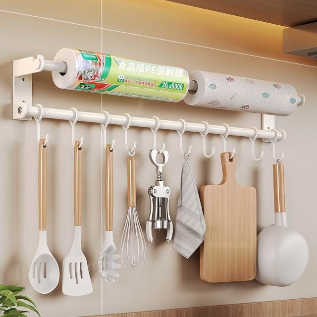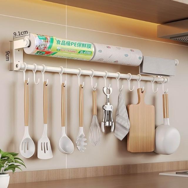 廚房掛鉤掛桿免打孔壁掛式置物架廚具勺子鍋鏟保鮮膜抹布收納架子 优厨纳家居