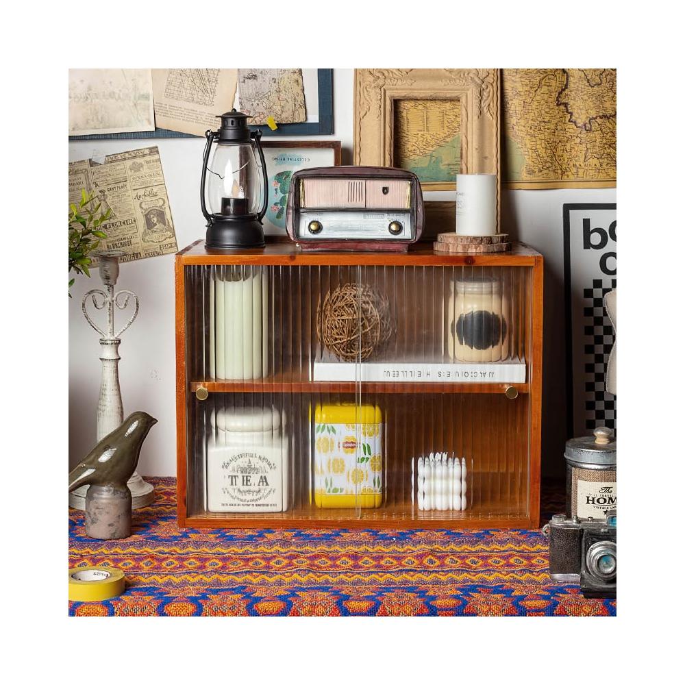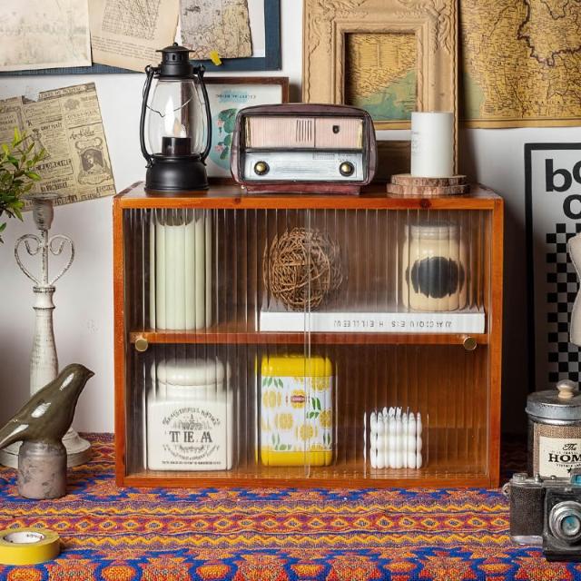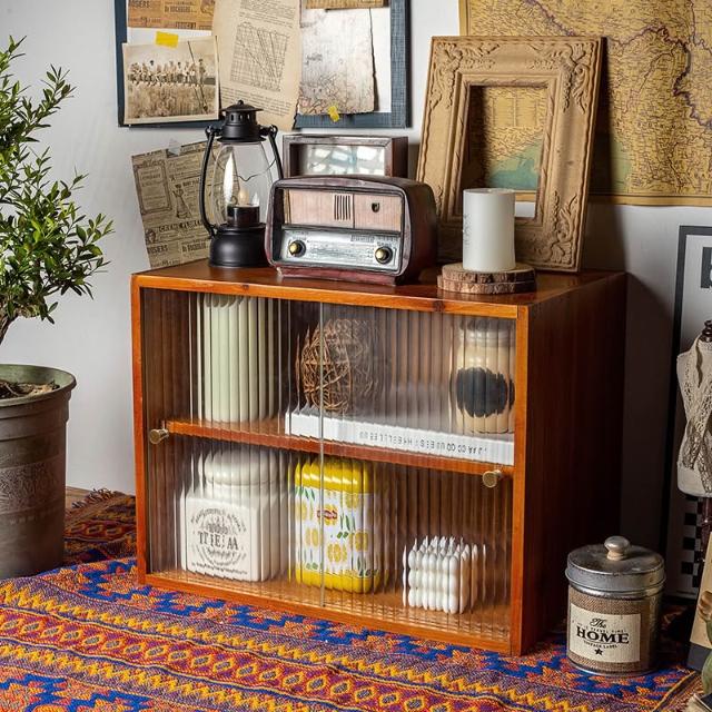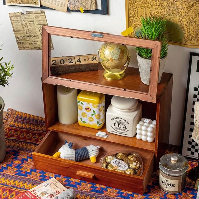 復古桌面護膚化妝品實木收納盒馬克杯茶具展示櫃香水防塵儲物櫃 优厨纳家居