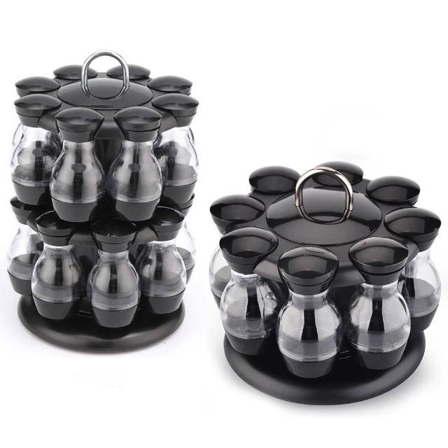 跨境16瓶雙層旋轉調料架廚房調味瓶套裝盒罐Carousel spice rack 优厨纳家居