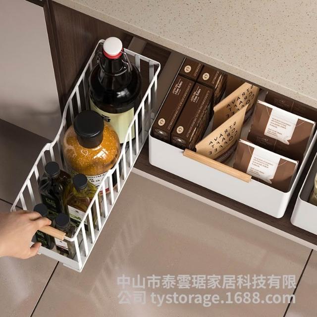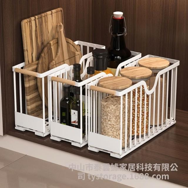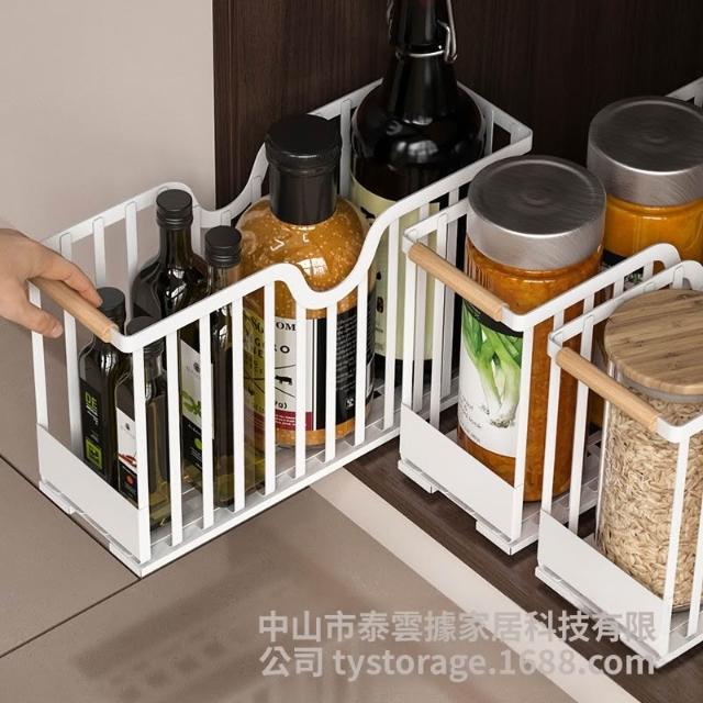 廚房調料置物架免打孔抽拉式置物架廚具收納架下水槽櫥櫃收納盒 优厨纳家居
