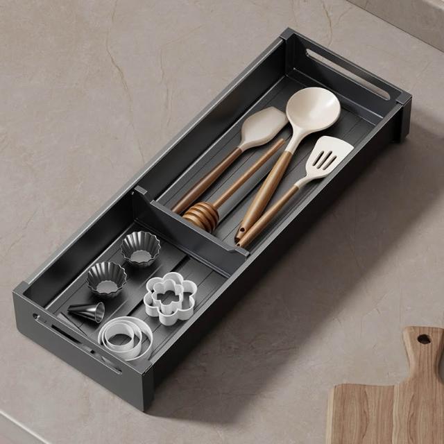 槍灰拉籃工具盒廚房櫥櫃鋁合金抽屜式分隔內置調味料碗碟收納碗籃 优厨纳家居