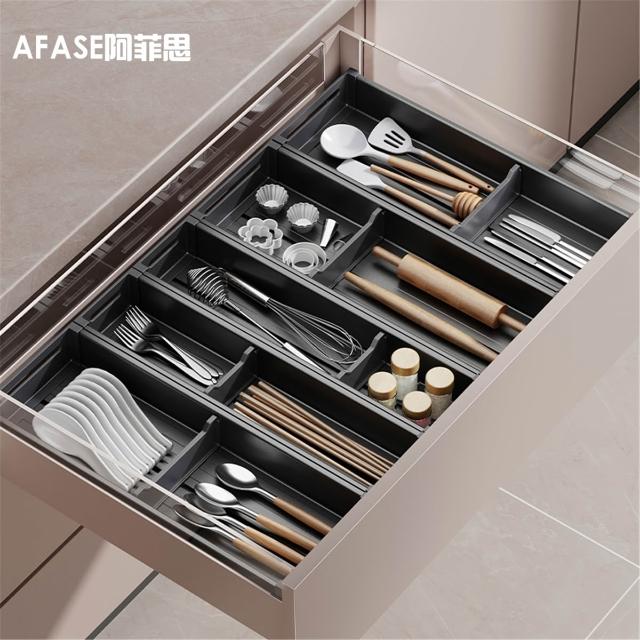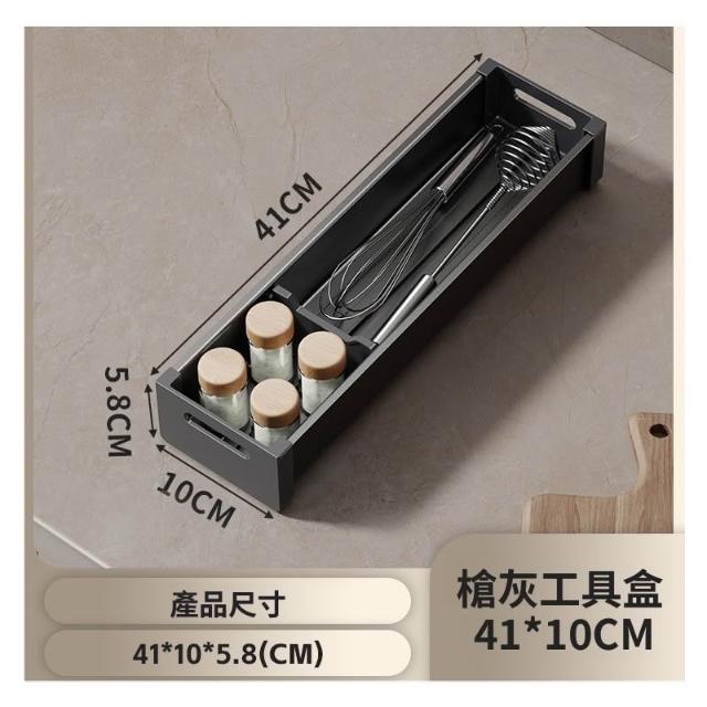 槍灰拉籃工具盒廚房櫥櫃鋁合金抽屜式分隔內置調味料碗碟收納碗籃 优厨纳家居