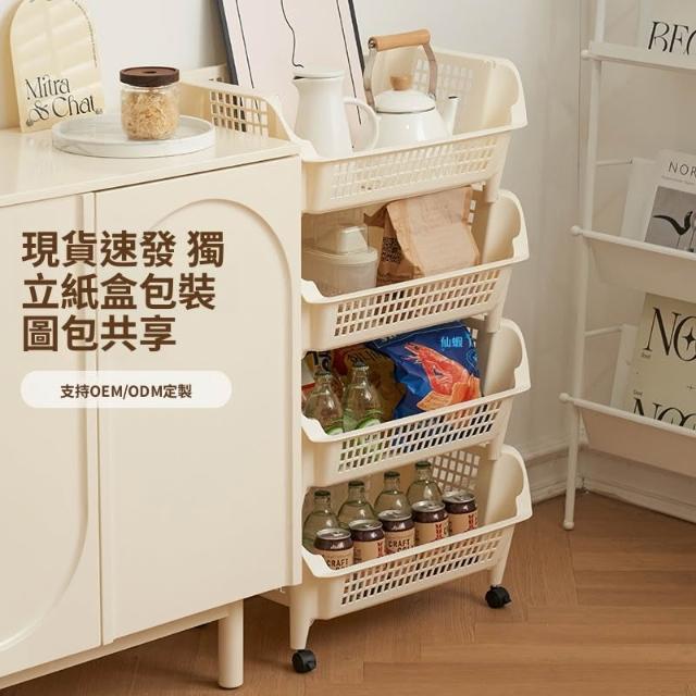 家用置物架帶輪镂空收納筐廚房衛浴大容量疊加簡約風可移動收納籃 优厨纳家居