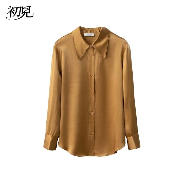 初見POLO衫 短袖T恤 亞麻上衣 純棉上衣 真絲上衣 重磅40姆米真絲襯衫女桑蠶絲緞面長袖上衣垂感紅色襯衣年新款