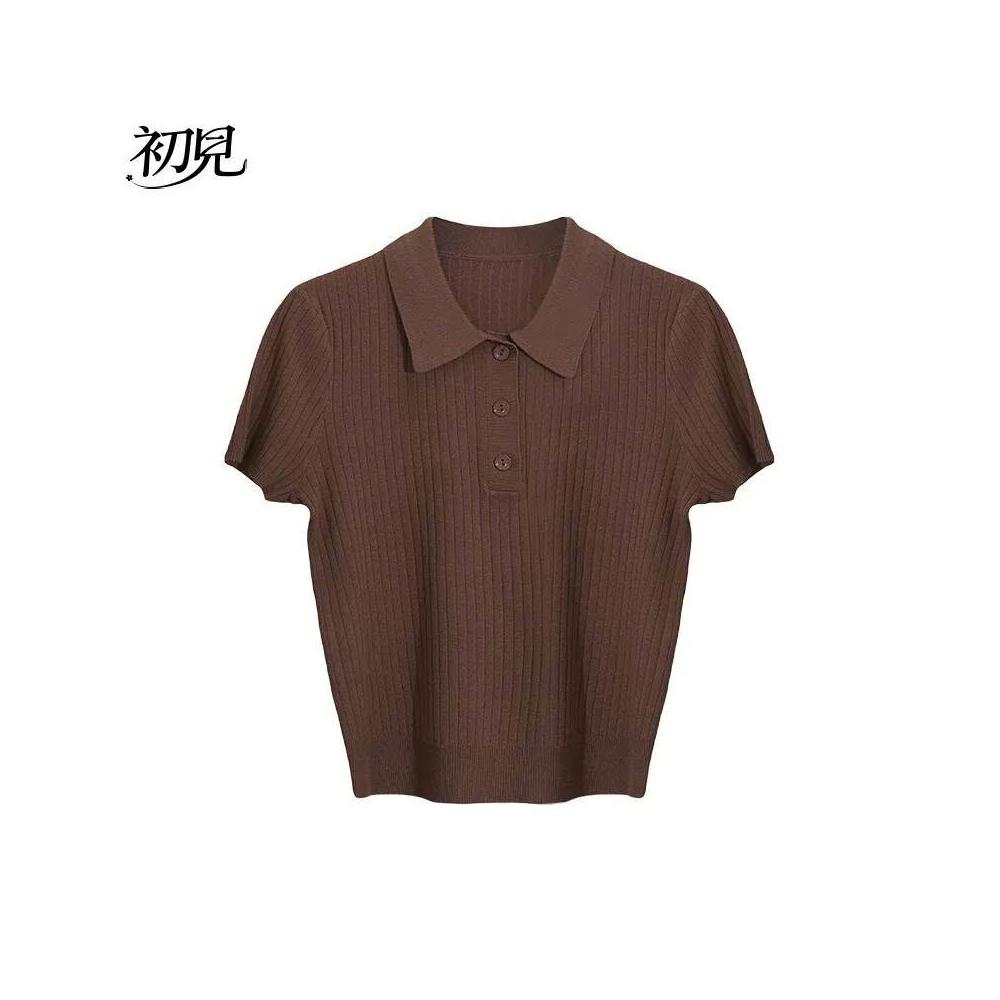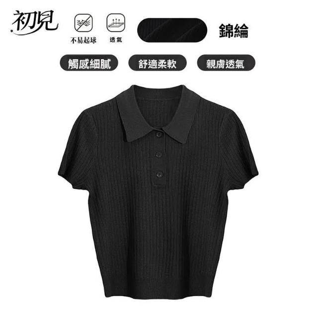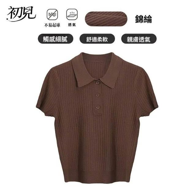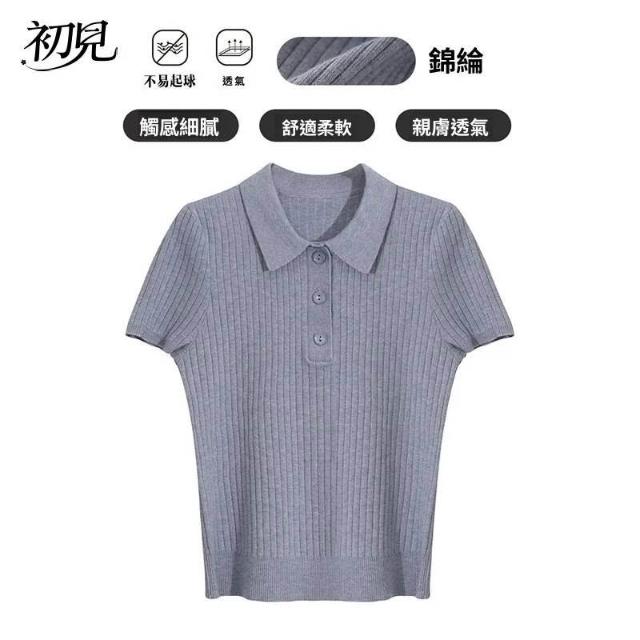 初見POLO衫 短袖T恤 亞麻上衣 純棉上衣 真絲上衣 女裝夏季polo翻領短包袖針織衫學院風短款顯瘦上衣小個子