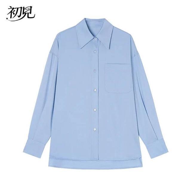 初見POLO衫 短袖T恤 亞麻上衣 純棉上衣 真絲上衣 春秋基礎款簡約休閑粉色襯衫女寬松顯瘦垂感不易皺免燙百搭襯衣