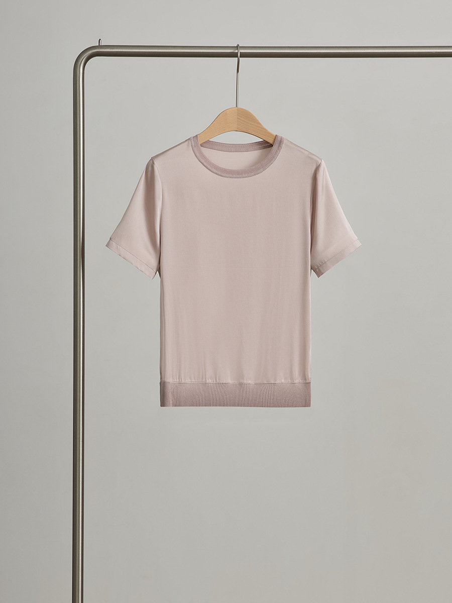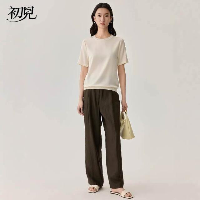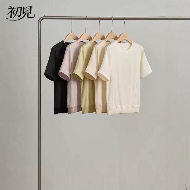 初見 短袖T恤 亞麻上衣 純棉T恤 真絲上衣 夏季桑蠶絲純色圓領簡約空氣T恤 真絲休閑基礎短袖上衣t恤女
