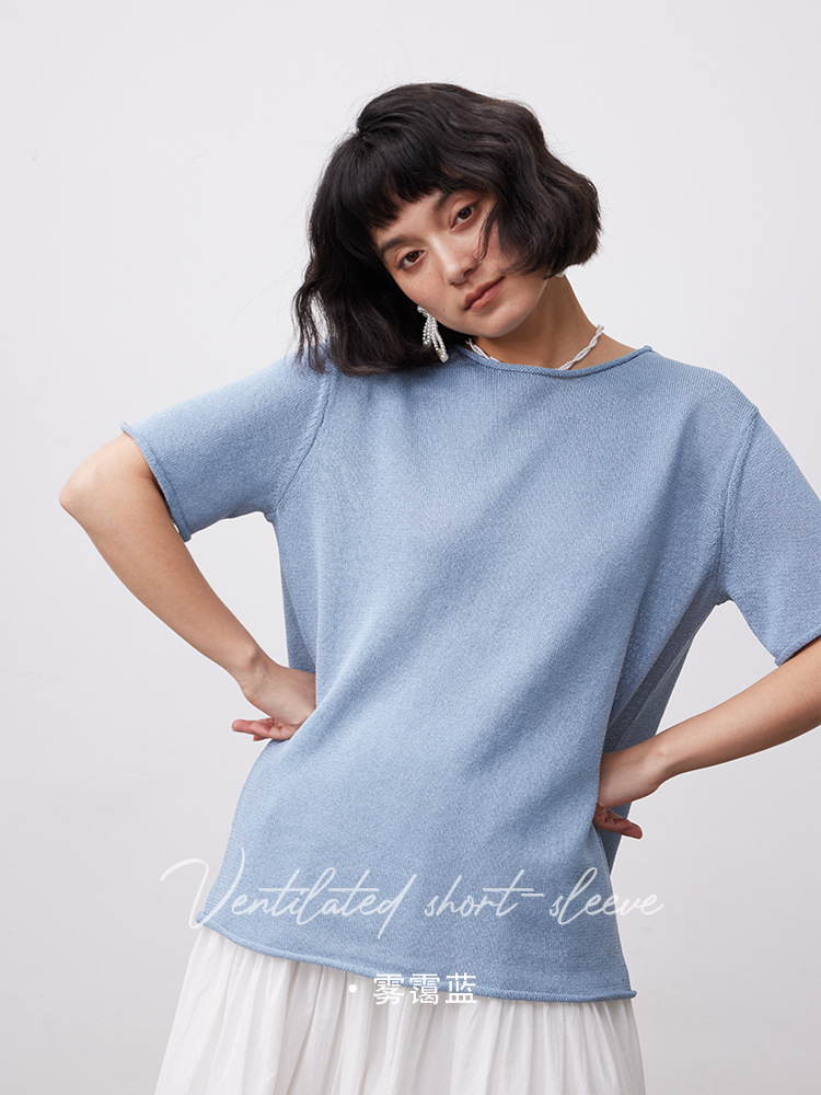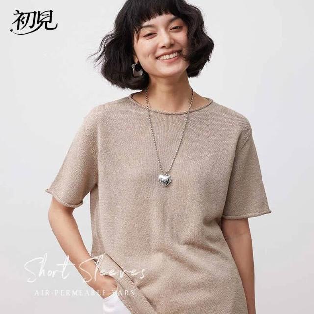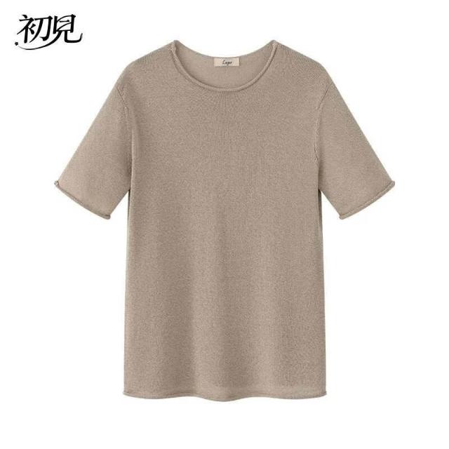 初見 短袖T恤 亞麻上衣 純棉T恤 真絲上衣 桑蠶絲簡約短袖針織衫女夏T恤時尚上衣
