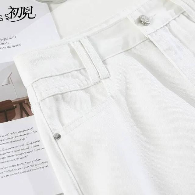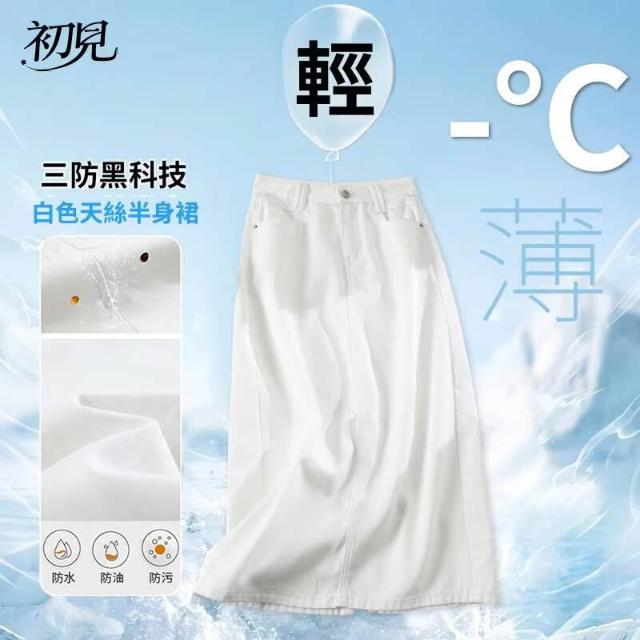 初見女裝 下著 半身裙長裙 吊帶裙 連衣裙 三防白色天絲牛仔半身裙女新款夏高腰顯瘦小個子a字長裙
