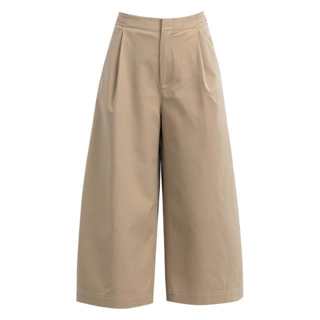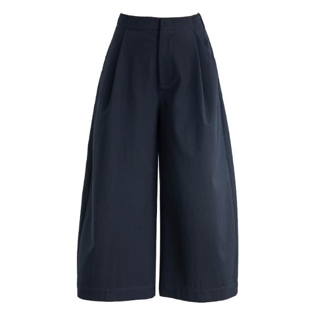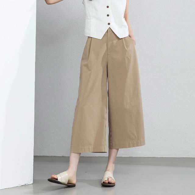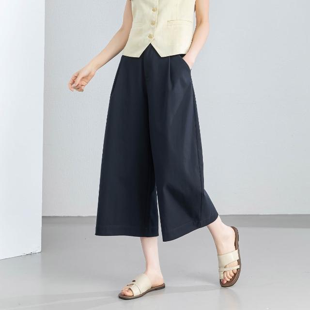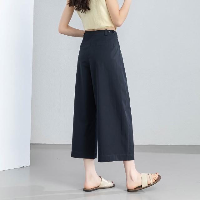 初見寬松九分褲 西裝褲 寬松休閑褲 闊腿褲 新款夏季休閑闊腿褲女寬松透氣八分褲裙褲可調節腰前壓褶女褲