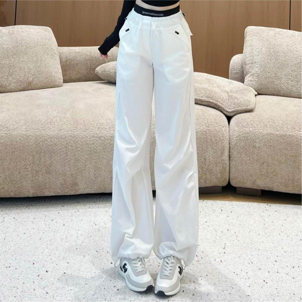 初見寬松九分褲 西裝褲 寬松休閑褲 闊腿褲 夏季新款運動休閑褲高腰遮肉顯腿長束腳褲南油女氣質直筒褲