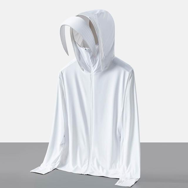 初見UPF50+防曬衣 立領抽繩防曬衣 戶外防曬衣 山系防曬衣 雲朵原紗防曬衣女upf50+可拆卸帽檐冰絲防紫外線戶外騎行防曬服男