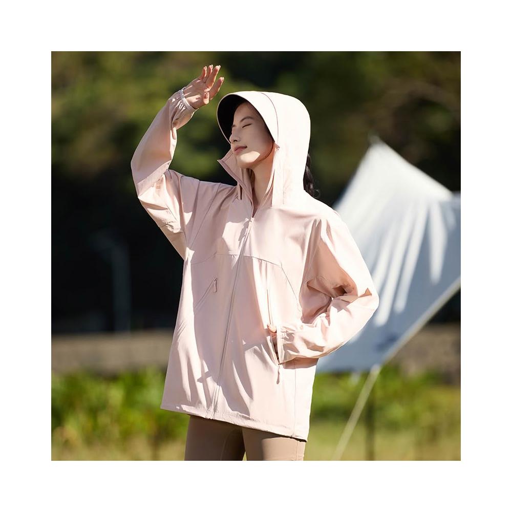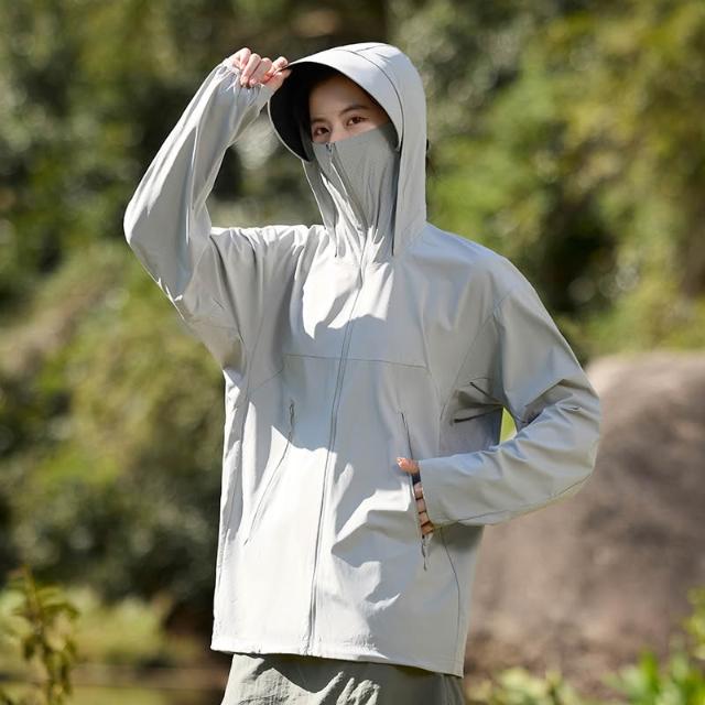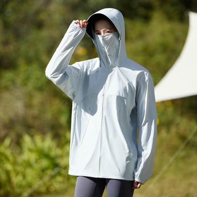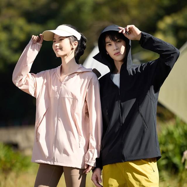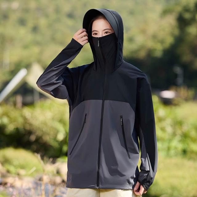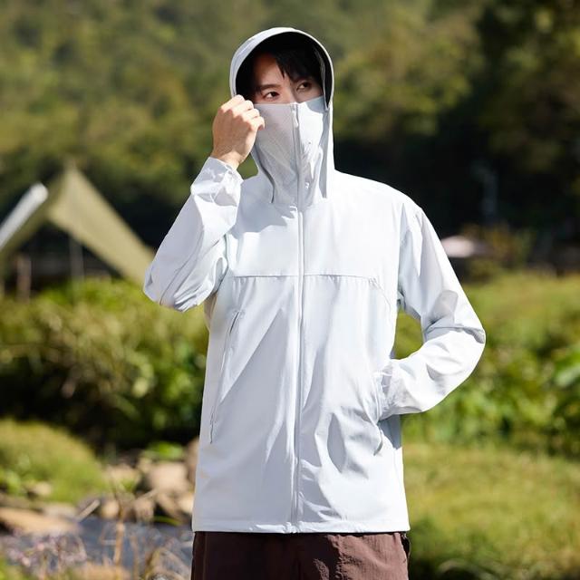初見UPF50+防曬衣 立領抽繩防曬衣 戶外防曬衣 山系防曬衣 UPF50+原紗黑膠冰絲防曬衣女防紫外線透氣防曬服男7A級抑菌皮膚衣