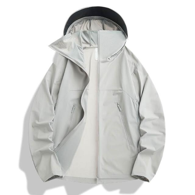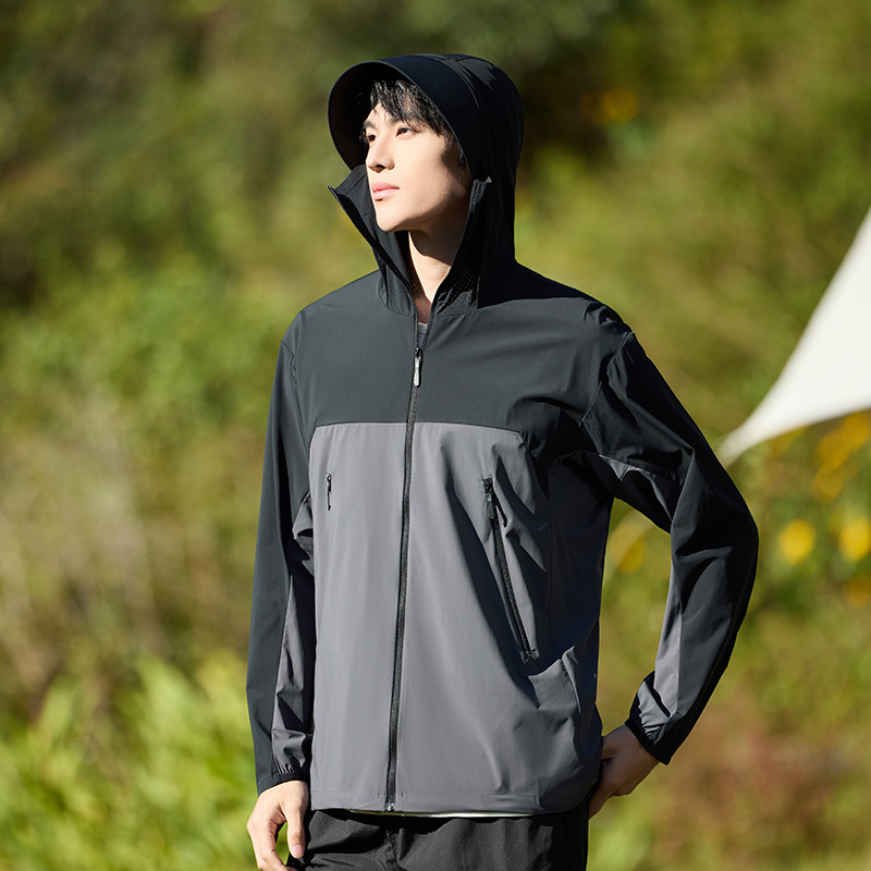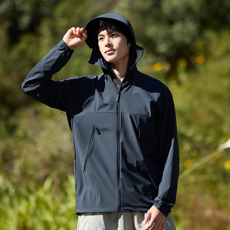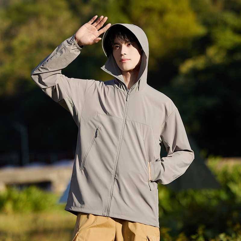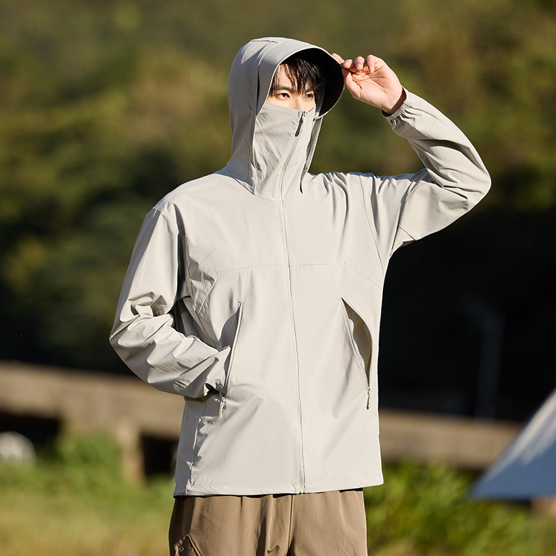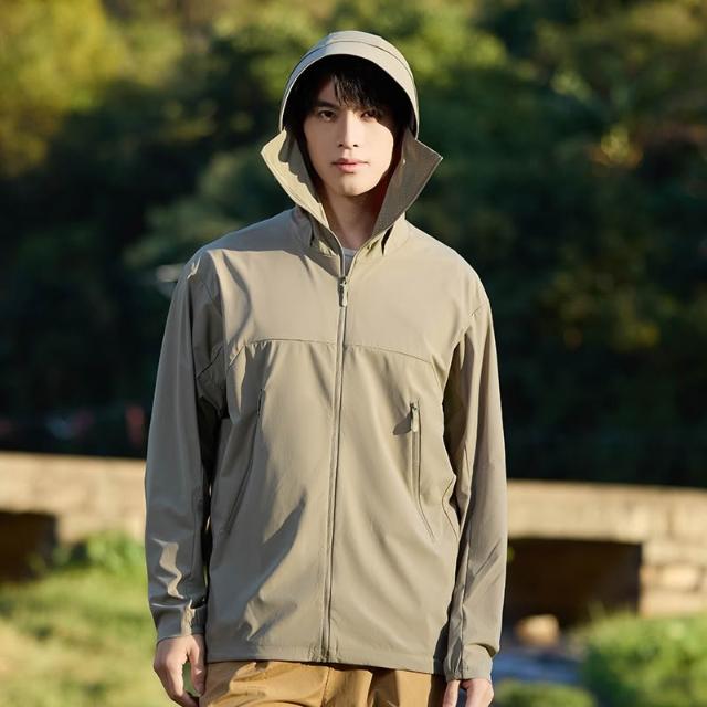 初見UPF50+防曬衣 立領抽繩防曬衣 戶外防曬衣 山系防曬衣 UPF50+原紗黑膠冰絲防曬衣女防紫外線透氣防曬服男7A級抑菌皮膚衣