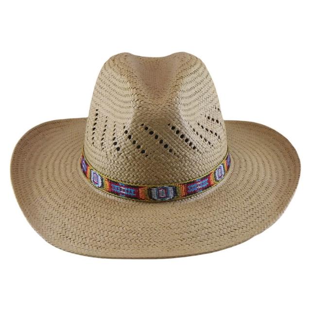 初見遮陽防曬帽 野營戶外帽 透氣遮陽帽 露馬尾帽 硬挺定型紙草騎士帽子西部巴拿馬牛仔帽春夏男士太陽帽
