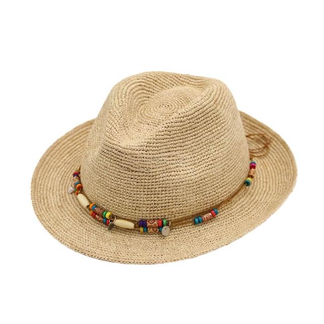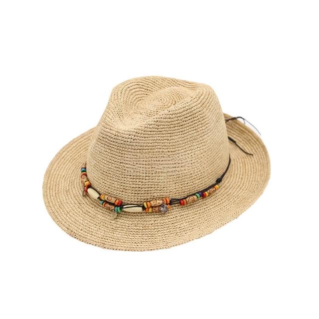 初見遮陽防曬帽 野營戶外帽 透氣遮陽帽 露馬尾帽 新款卷邊禮帽女士防曬遮陽皮帶拉菲草編織草帽男士情侶草編小禮帽