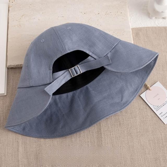 初見遮陽防曬帽 野營戶外帽 透氣遮陽帽 露馬尾帽 純亞麻可紮馬尾漁夫帽輕便大帽檐防曬帽透氣帽子夏
