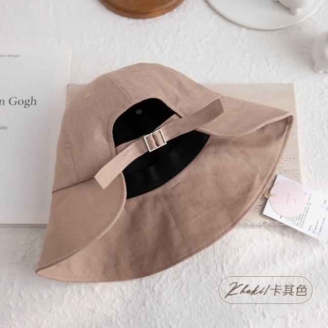 初見遮陽防曬帽 野營戶外帽 透氣遮陽帽 露馬尾帽 純亞麻可紮馬尾漁夫帽輕便大帽檐防曬帽透氣帽子夏