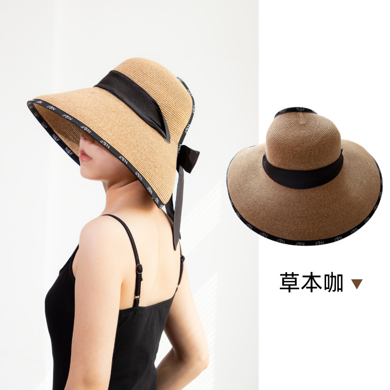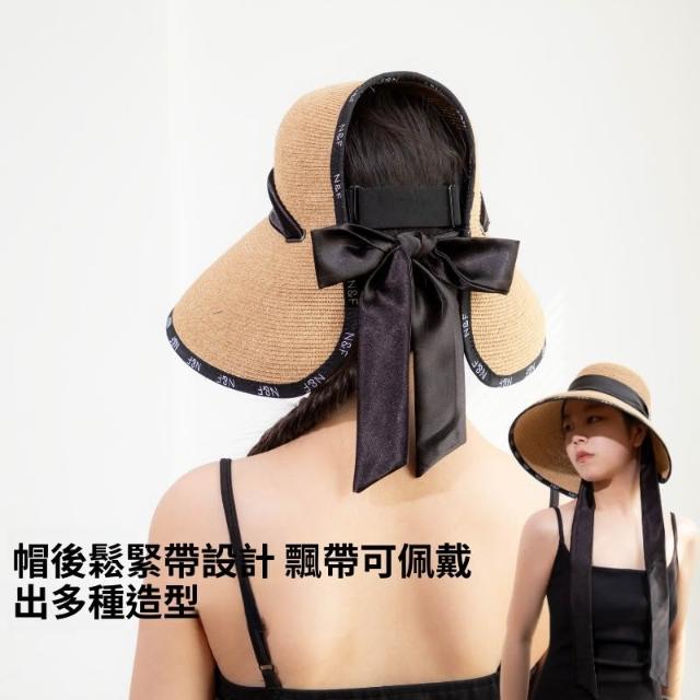 初見遮陽防曬帽 野營戶外帽 透氣遮陽帽 露馬尾帽 新款夏季草編遮陽帽女大檐防曬帽大帽檐帽子透氣全臉防紫外線