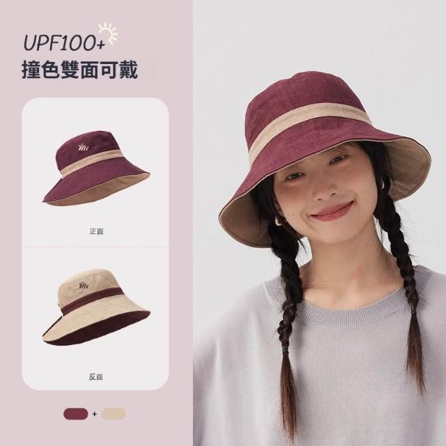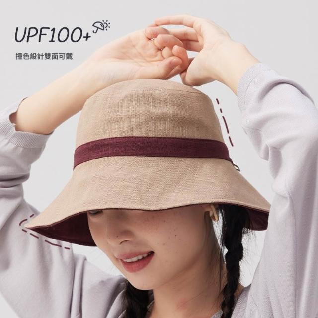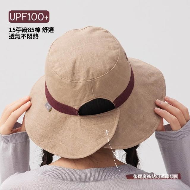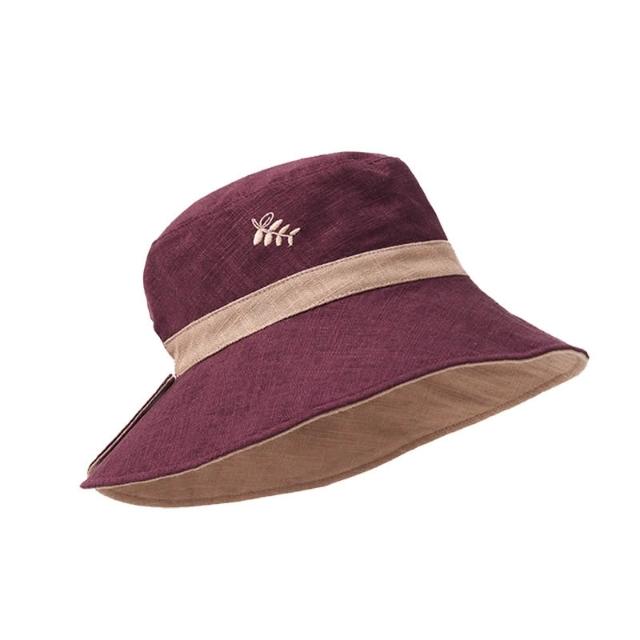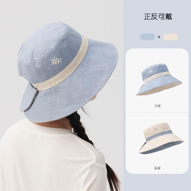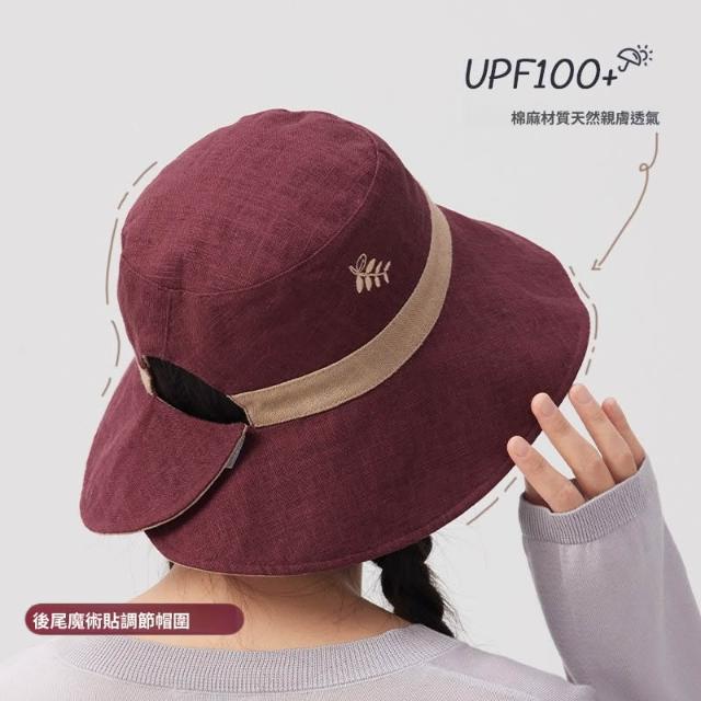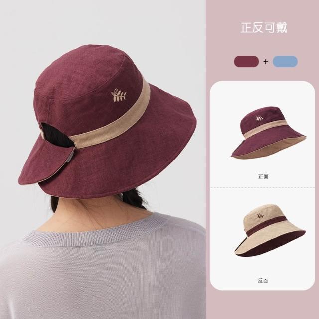 初見遮陽防曬帽 野營戶外帽 透氣遮陽帽 露馬尾帽 天然苎麻山野莓果雙面雙戴刺繡漁夫帽大頭圍防曬帽遮陽太陽帽夏